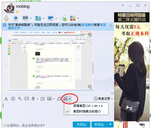 4、qq快捷键ctrl+alt+a截图,在qq登陆后,同时按下键盘上的ctrl键 alt 键和a键截图,这个方法和qq聊天按钮截图按钮的性质是一样的。用键盘左右两边的alt和ctrl键都行。