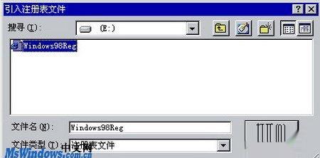 1、第1步,在windows 98系统中打开“注册表编辑器”窗口,依次单击“注册表”“引入注册表文件”菜单命令,如图20100409146所示。 图20100409146 单击“引入注册表文件”命令
