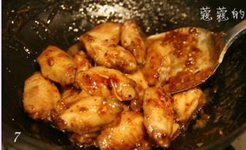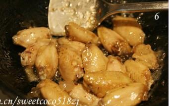 7、炒至冰糖完全融化,鸡翅表面出现琥珀色,并有焦糖香味散发出来。