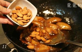 12、大杏仁表面均匀裹上酱汁后,即可关火装盘。