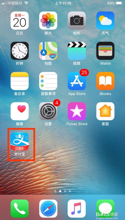 1、这里我们以苹果手机为例,首先我们打开手机,点击一下“支付宝”系统图标。