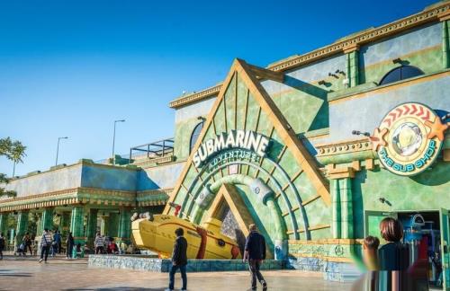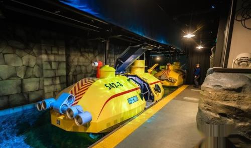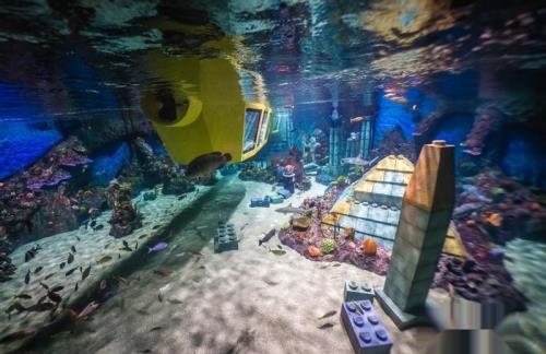 3、在【adventure探险区】第一个要去体验的是【潜水探险】,在这里,我们会乘坐黄色潜水艇,去水下探寻失落世界的秘密,这个项目非常经典,可以看到乐高积木搭建的水下世界和各种热带鱼类。