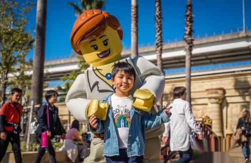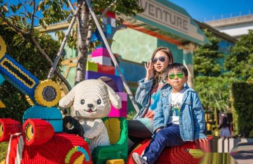 2、一进入【adventure探险区】,我们就偶遇了电影里的大探险家,完全不用害羞,可以主动的上前索取合影,其实在乐高乐园里的每一个区都可能会碰到该主题区的特属积木人,他们会很热情的主动和孩子互动,每一个拍一张也可以凑一个朋友圈了。