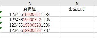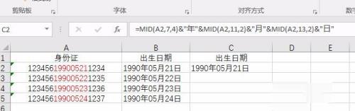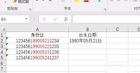 1、第一种方法:打开需要截取出生年月的身份证号,例如下图所示,红色部分是出生年月日。