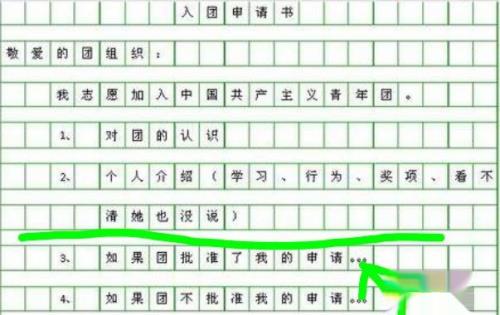 5、入团的动机、理由要重点写。申请的理由比较多,则可以从几个方面、几个阶段来写。另外对团的认识往往是同个人的成长经历有关的,这在申述自己的入团动机时已有所涉及。