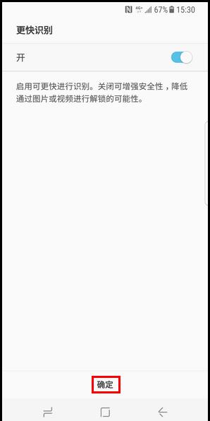 11、11.弹出“更快识别”提示后,根据需要开启或关闭该功能,这里以开启为例,然后点击【确定】。