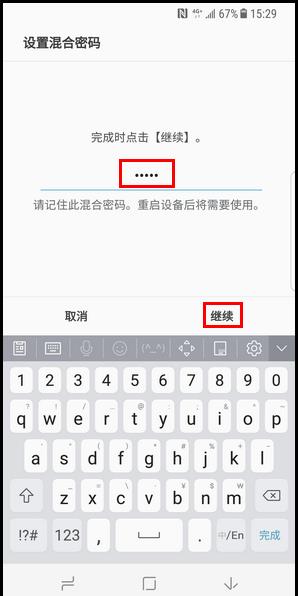 6、6.输入要设置的混合密码,然后点击【继续】。 提示:混合密码要求必须包含至少4个字符,其中包括至少1 个字母。