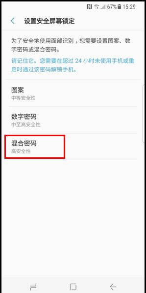 5、5.设置安全屏幕锁定方式,这里以选择【混合密码】为例。