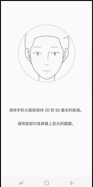 10、10.握住设备,使屏幕朝向您,看着屏幕。 注:请将手机与面部保持20到50厘米的距离,将面部对准屏幕上显示的圆圈。