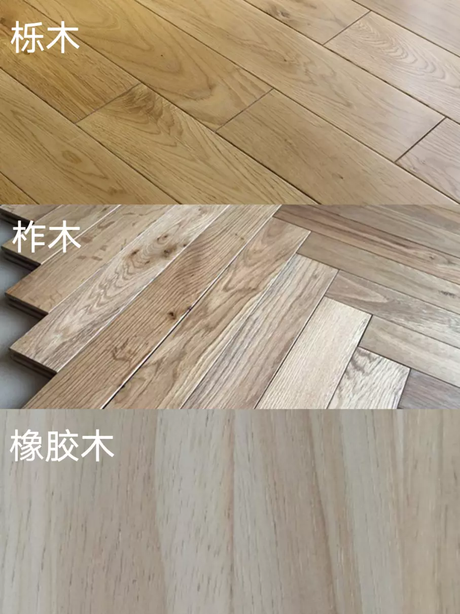 市场上多用柞木以及橡胶木来混淆视听,冒充进口橡木,真正的橡木由于成材期比较久,至少需要五十年以上,板材的纹理非常自然,略有波纹状,不过多以直纹出现,有明显的山形纹,质地坚硬,厚重。而柞木因其成材期不如橡木久,在同等面积样块对比上,纹理明显不如橡木大气,也不会像橡木一样自然圆润,比较好区分。而橡胶木质地本身就不如橡木及柞木硬,人工合成成分较多,而橡胶树也是生产橡胶的主要来源,本身是非常容易弯曲变形的。而且多以指接板工艺来加工,下图能够明显感受到三者的不同。
