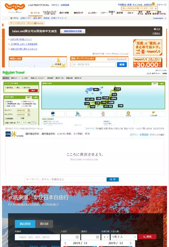 6. Jalan、乐天旅行、一休、E路东瀛