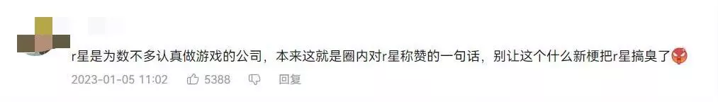 不可否认的是,这是一种技巧拙劣但成效显著的造梗方式。一方面,很多人在看到这类短视频前,可能压根不知道“R星”是什么,但通过评论区网友们的指路,他们会了解到这是一家国外著名的游戏公司,曾经出品过不少叫好又叫座的游戏,算是无意中给R星在国内打了一波免费广告。