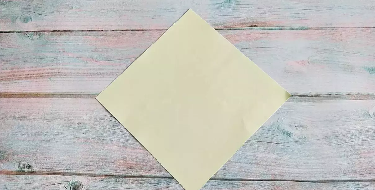 取出正方形纸,沿着两条对角线折叠。