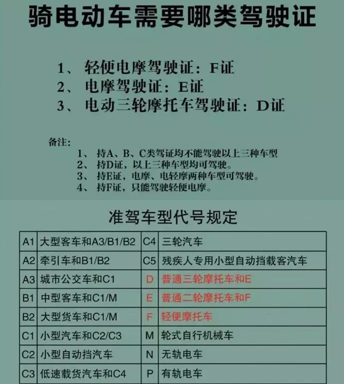 2、电动摩托车,上路时需要持有D/E驾照中的一种;
