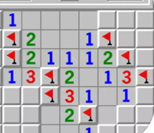 如上图所示,当你点开一个方格的时候,他有可能会同时出现多个格子。这时我们就可以看这个数字周围的格子。当这个数字是一时并且恰好他旁边的八个格子里只有一个格子是未知的,那么这一个格子就是雷。同理可知,如果这个数字是一并且他周围的八个格子里面有一个一定是雷,那么剩余的七个格子里面就都是安全的。