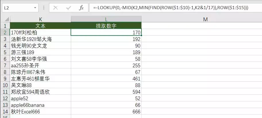 =-LOOKUP(0,-MID(K2,MIN(FIND(ROW($1:$10)-1,K2&1/17)),ROW($1:$15)))