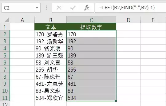 利用 find 函数找到分隔符所在的位置,再用 left 函数从左边开始提取数字。