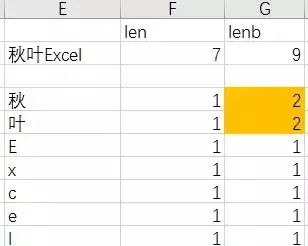 如下图中,len 函数将英文作为 1 个字节,而 lenb 函数将汉字作为 2 个字节。