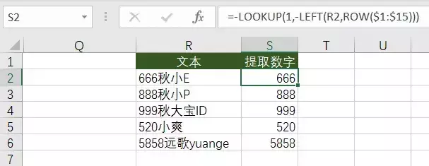 ❷ 借助 max 函数(只能提取整数)。