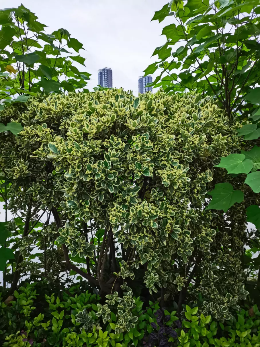 金边黄杨是卫矛科卫矛属植物,因叶片有较宽黄色边缘,所以通常在园林景观中做色块植物。金边黄杨对环境适应性强,耐旱,耐寒冷,萌芽力强,又耐修剪,又常绿,在我们国家很多区域冬季看到它的机会非常多,特别是市政与居住区景观,常用来做绿篱,色块,或者金边黄杨球。