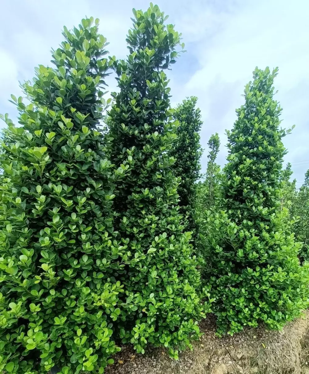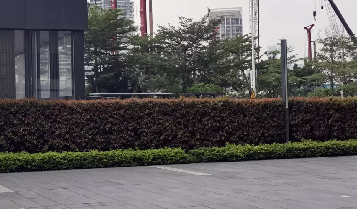 火山榕是亚热带植物,在南方也比较常见,叶片有光泽,椭圆形或者倒卵形。火山榕生长快,可塑性强,又耐修剪,对环境适应性强,在广东地区常用作居住区或家庭园艺绿篱围墙。它即时效果好,种上去很容易密实,不太会掉叶片。垂叶榕在广东地区运用也比较多,但是它刚种上去叶片会凋落,密实性没火山榕好。