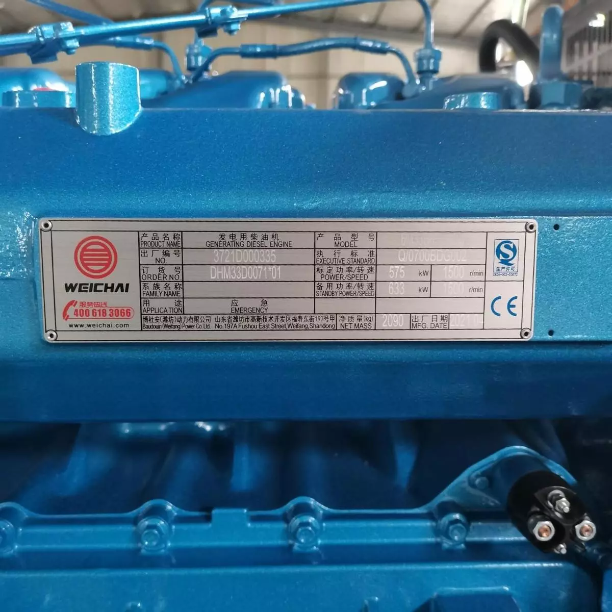 1、发电机组采用山东潍坊潍柴动力股份有限公司柴油发动机为动力,配套知名品牌发电机。