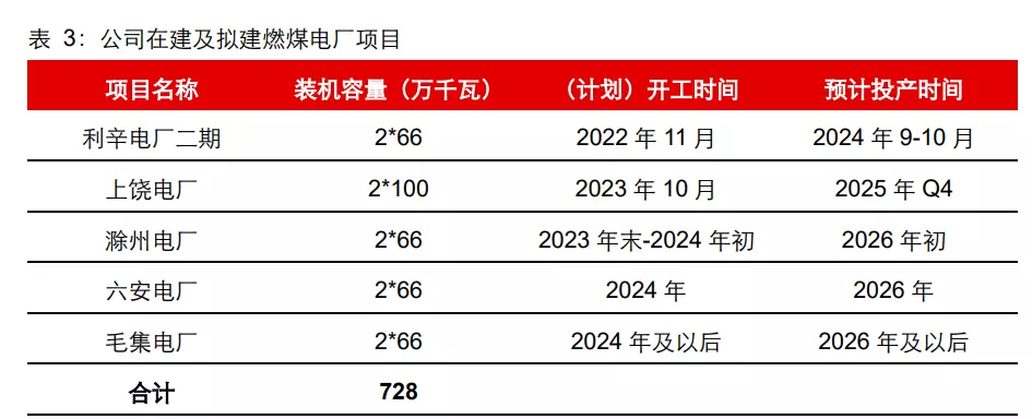 在建项目为利辛电厂二期项目,已于去年 11 月正式开始建设,预计 2024 年 9-10 月投产。拟建项目包括上饶电厂、滁州电厂、六安电厂、毛集电厂。