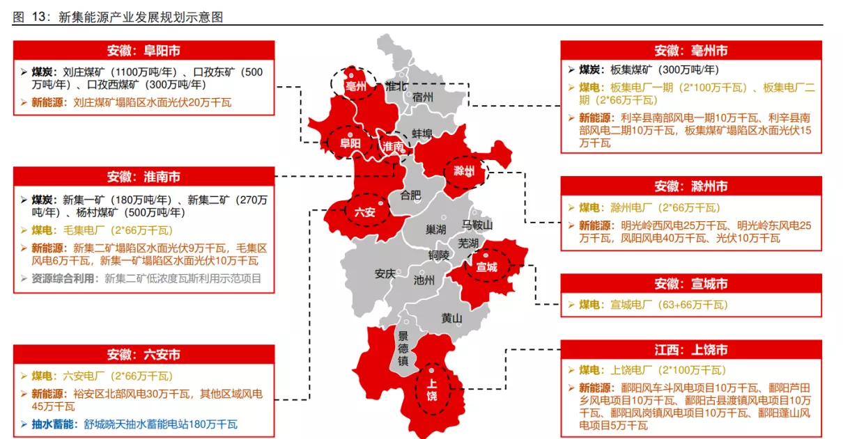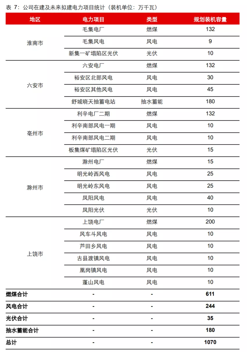 公司参股电力企业为中煤宣城发电有限公司,公司持股比例 49%,中煤电力有限公司持股比例 51%,目前发电装机规模达 1290MW。此外公司还筹备建设上饶电厂(2*1000MW),并拥有新集一矿、二矿两个低热值煤电厂。