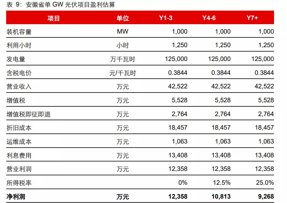 我们依据以下假设进行光伏项目盈利估算: