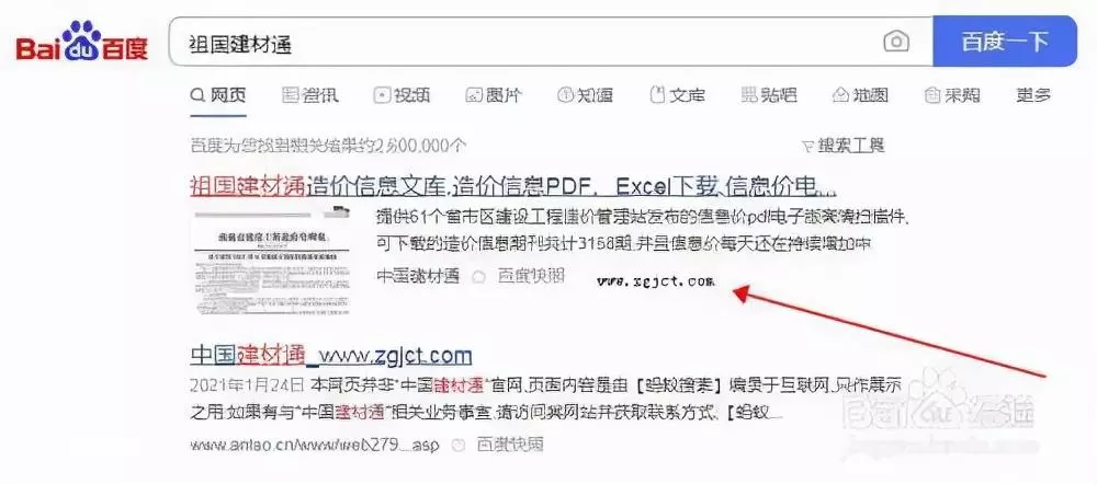 首先要用电脑访问百度,然后在搜索框内输入 祖国建材通,看见后点击进去就行了