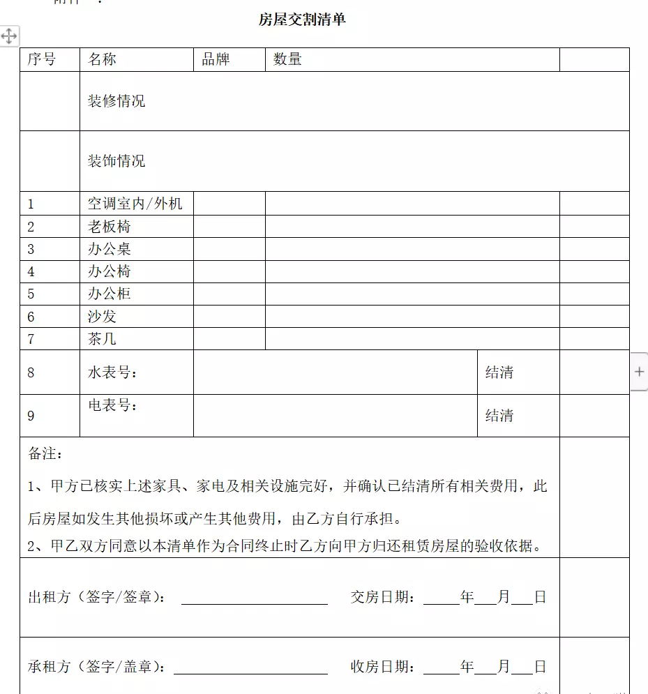 【5】房屋交割清单