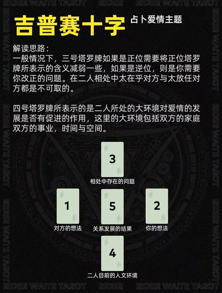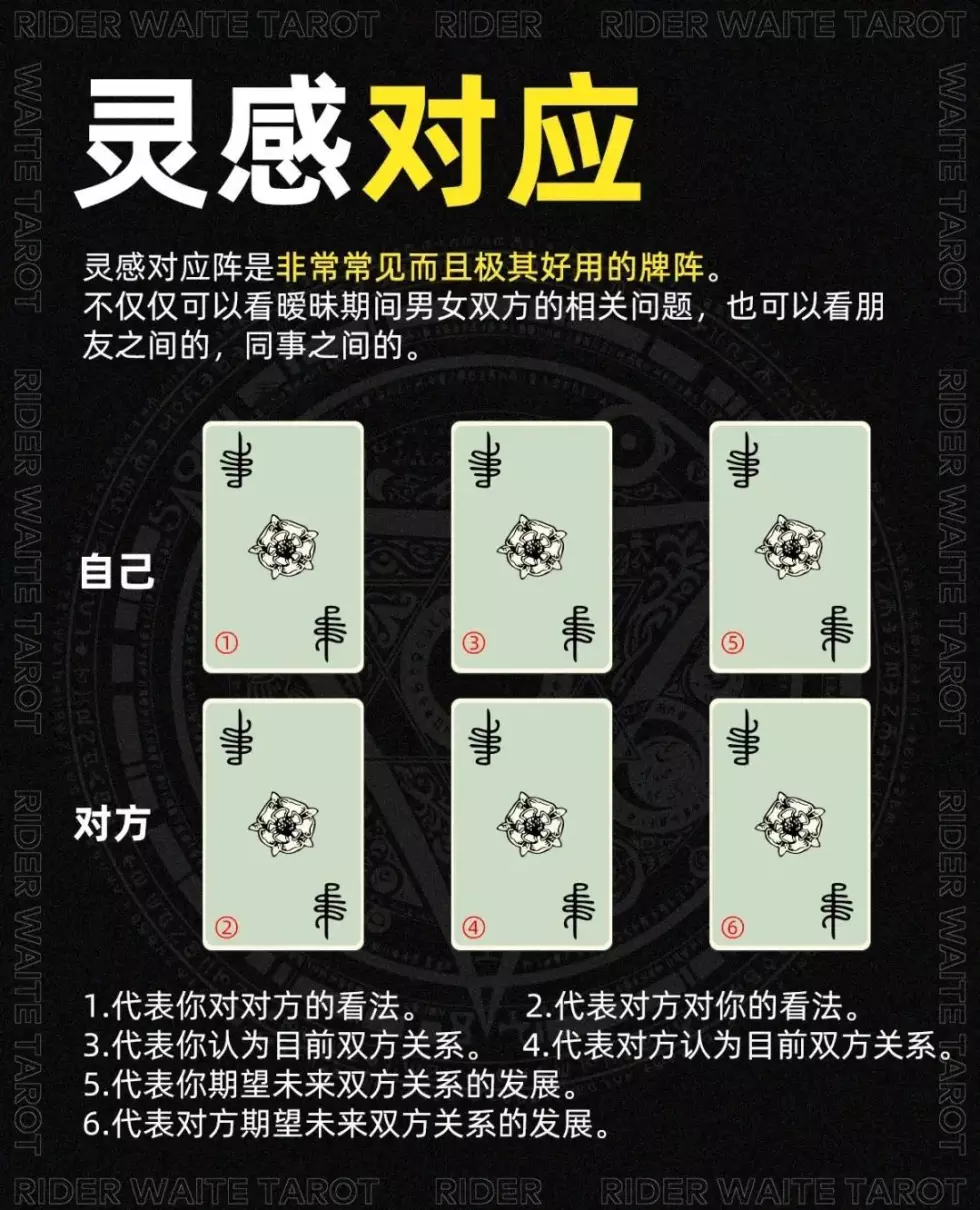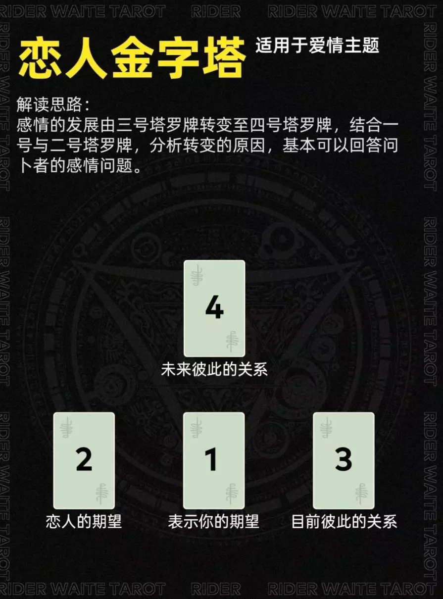 牌面一出明了易懂,是占卜爱情方面常用的牌阵。
