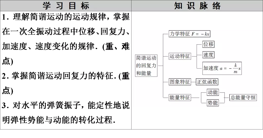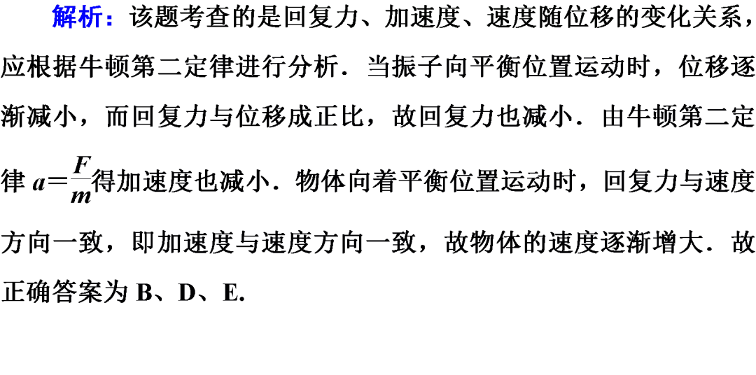 【提示】由回复力F=-kx可知:从平衡位置到达最大位移处的过程中,回复力逐渐增大,方向一直指向平衡位置.从最大位移处向平衡位置运动的过程中,回复力逐渐减小,方向一直指向平衡位置.