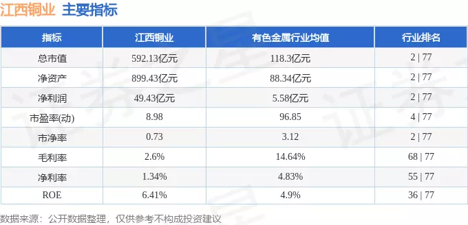 该股主要指标及行业内排名如下: