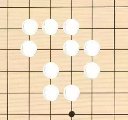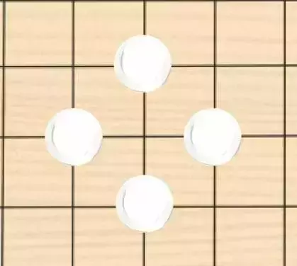 了解了以上的规则,如果你足够聪明,你可能已经想到了一些特定的落子布局。比如下图中的白棋: