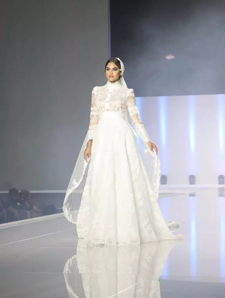 涤纶是最常见的纺织原料。是非常便宜的化纤。用纯涤纶做的欧根纱面料非常多,比较硬挺。成本很低。因为纱支和密度的不同有不同的规格。纱支越高,密度越高的欧根纱面料相对好一些。但也是也是几块钱一米的。这种欧根纱面料用途特别广泛,做婚纱用得最多。密实一些的欧根纱看着更高档一些。所以婚纱贵并不在于面料,而在于设计和做工。