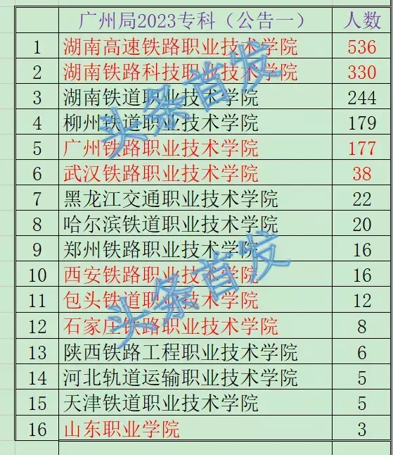 由此可以看出,“广铁集团”招聘最多依然是大专,看看有你们的学校吗?“湖南高速铁路职业技术学院”,“湖南铁路科技职业技术学院”和“湖南铁道职业技术学院”为进入“广铁集团”前三强大专院校。所以想要进入“广铁集团”,首先要选一个实力强的铁路院校(能力强的选本科以上的)。