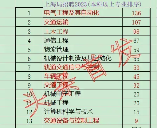 1.5.2录取专业靠前的专业,都以交通运输为中心展开的,专业靠前情况有较大差异,例如“上海局”录取人数最多的专业是“电气工程及其自动化”,“广铁集团”录取人数最多的专业是“交通运输”。………………………… 1.5.3排名靠前10的专业大同小异,招聘侧重点略有不同。