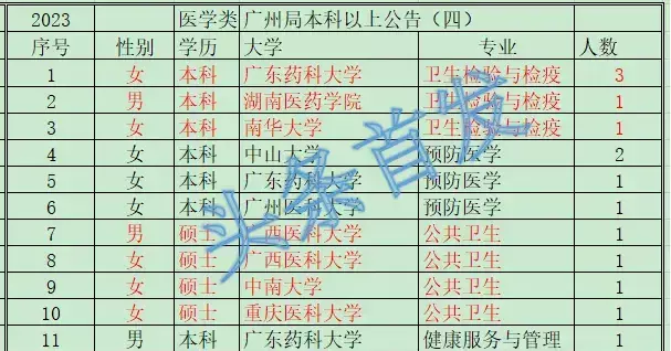 “广铁集团”除了很多运营单位之外,还建有疾病预防控制所两个,分别是“广州铁路疾病预防控制所”、“长沙铁路疾病预防控制所”各有100多号人,所以也招聘一些医学类专业,其所需的专业及学校数据如下: