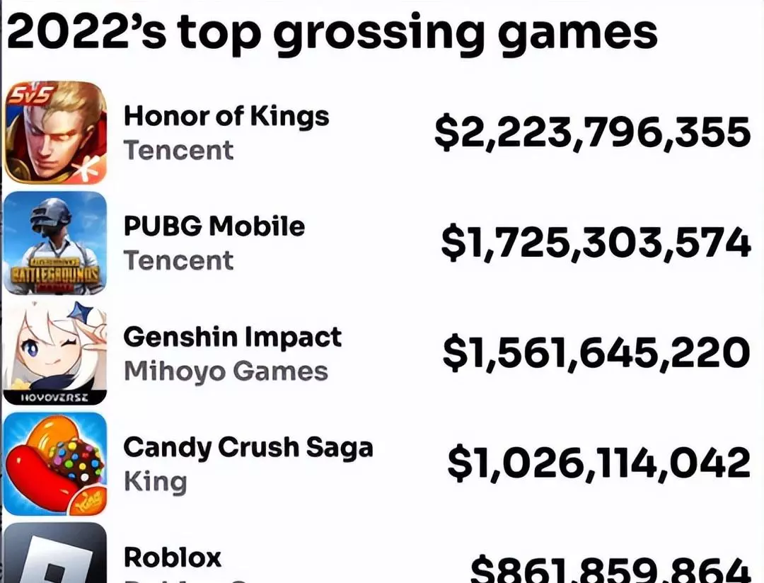 去年根据第三方数据统计,王者荣耀去年全球年收入22.23亿美元。预计加上未统计到的部分,约占腾讯游戏整体收入的10%,并且今年依旧以一骑绝尘的姿态狂奔。