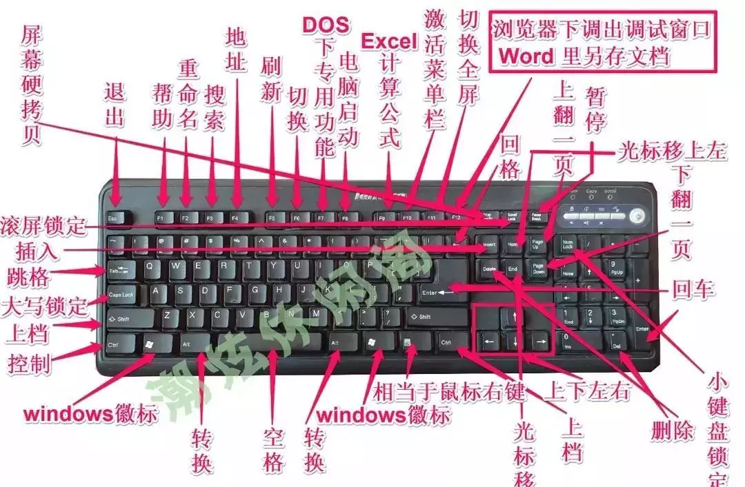 2、F1~F12键:功能键。在不同的软件中,起为其定义的相应功能的作用,也可以配合其他的键起作用。例如在常用软件中按一下F1是帮助功能。