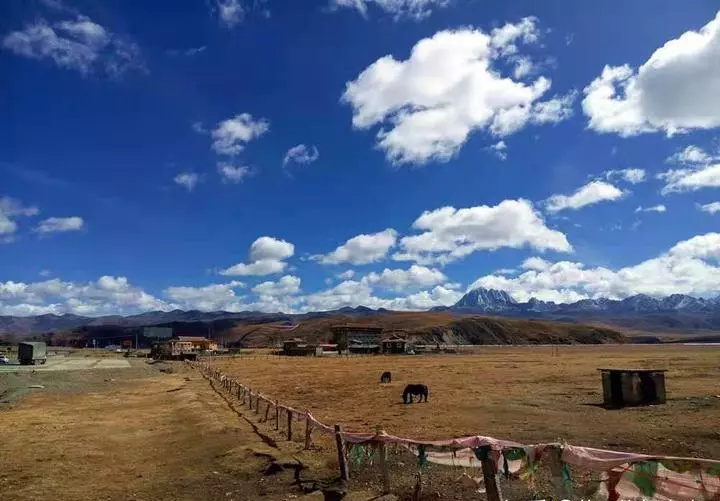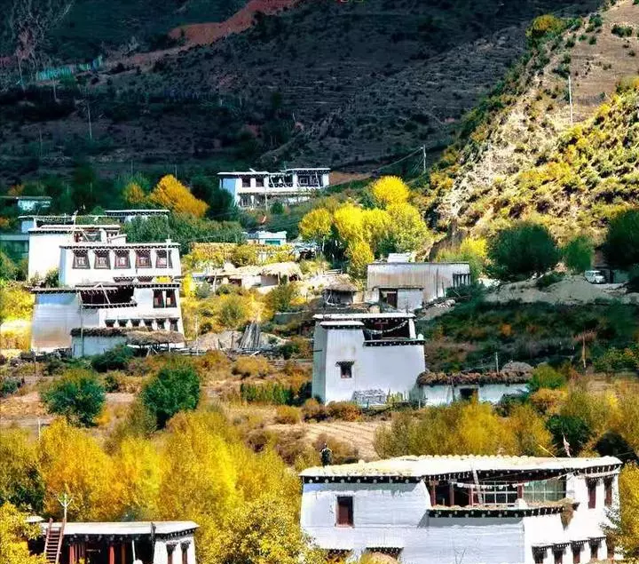 这里还有一个美丽的小村镇,建造着十分有特色的藏式民居,用石头砌成的白色院子,配上朱红漆色的大门,错落有致的修建在依山傍水的美景之地。