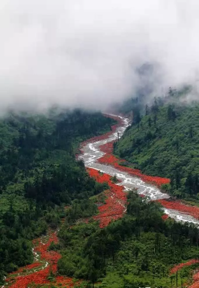 海螺沟十八景之一的红石滩可也是颇具盛名的,这里号称中国的“红石公园”,有着全世界唯一的红石河谷。