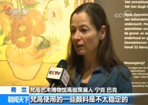 梵高艺术博物馆高级策展人 宁克·巴克:过去我们通过研究,对梵高作品有了充分的了解。同时,我们对于他的作画技巧也进行了大量的研究。有时我们可以对一些画作进行修复,但是对于《向日葵》,我们选择进行最小限度的修复,我们不要对它进行移动,同时调暗了博物馆内的灯光,这些决定都是基于这次的研究。