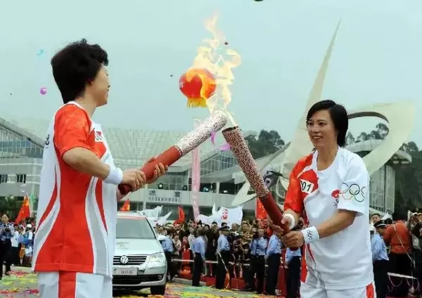 2008北京奥运火炬传递 云南001号火炬手 钟焕娣(右)