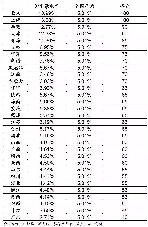 东北三省的211大学录取率都排名比较靠前,随着东北人口的持续减少,985、211大学的录取率会持续上升。