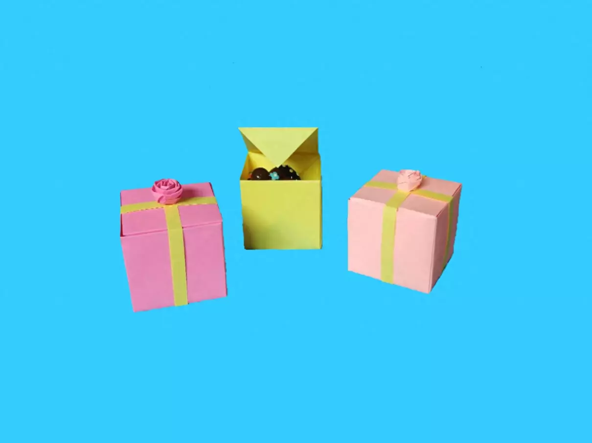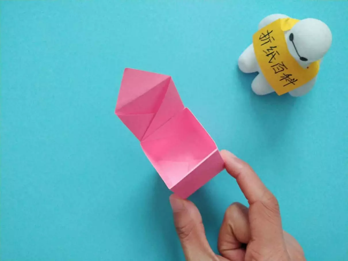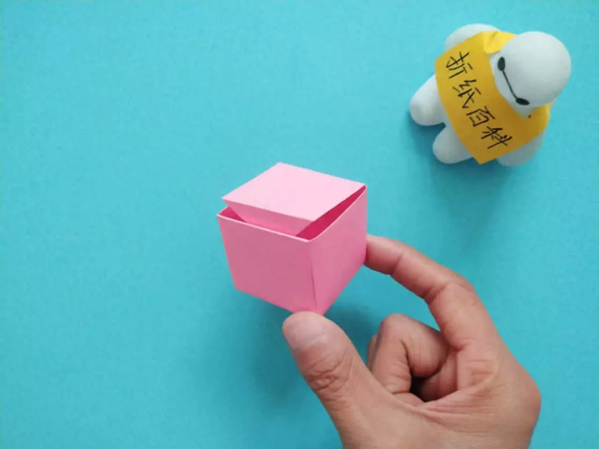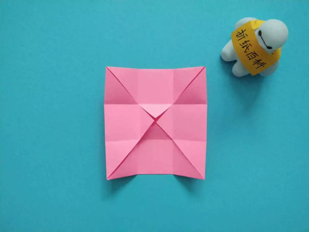 贴上喜欢的图案,漂亮的牛奶盲盒就做好了。15*15cm彩纸一张,如图两边向上折1cm左右。左边折向右边。右边折出的1cm如图粘起来。在中间折出折痕。四个角折向中间。上下两边的三角如图向内折。如图四个角折出交叉的折痕。从中间撑开,上面的一个边折进去。另一个边也折进去。两边的三角折进去粘起来。另一个口如图捏起来。