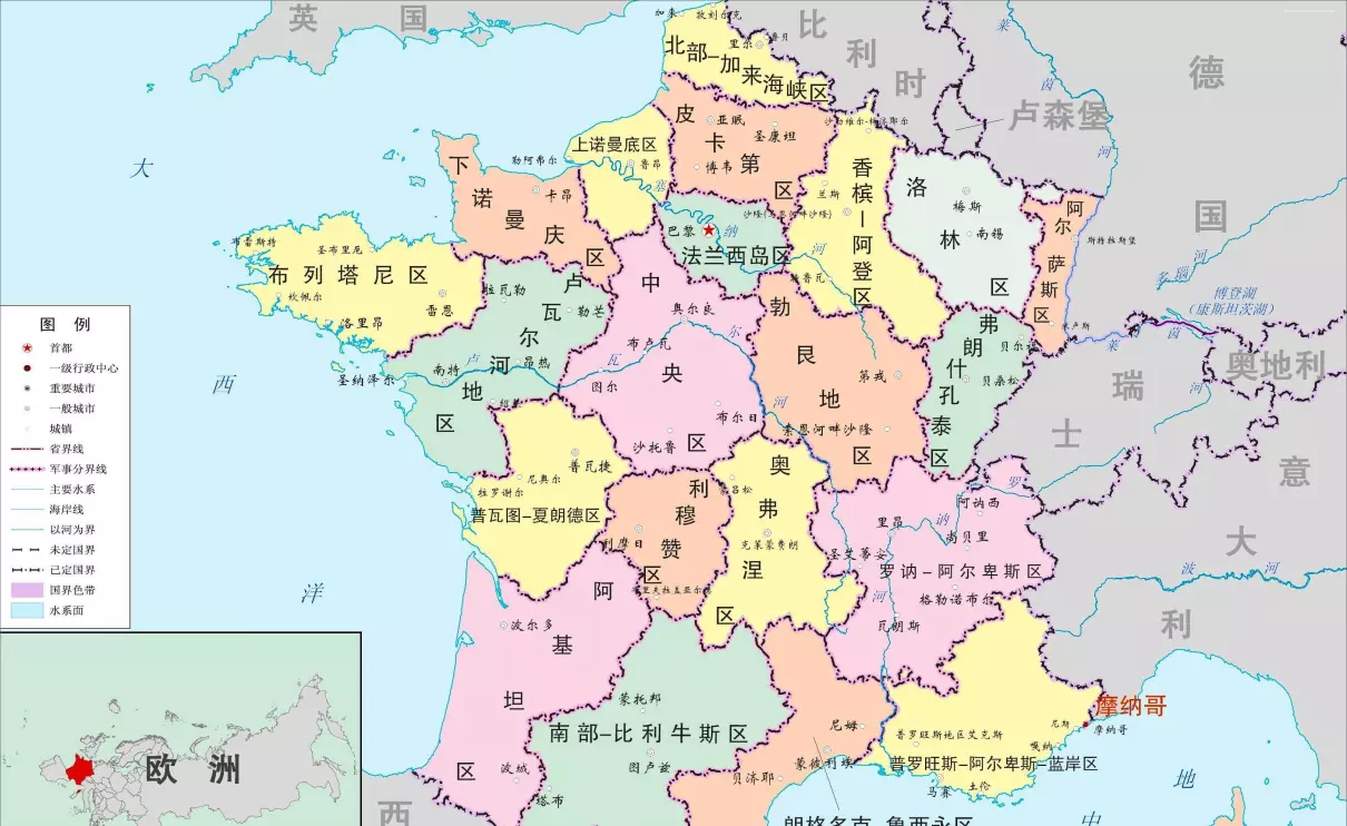 可能有人会说瑞典、挪威等几个北欧国家的领土面积比英国、德国更大,但一个国家的体量是由领土、人口、资源共同构成的。地处北欧寒冷地带的瑞典、挪威人口远比英、德少得多。这些北欧国家有限的人力资源很难支撑起强大的国防和产业体系。综合来看英、法、德三国的体量在欧洲算是比较大:法国的领土面积在欧洲排第三。排第一的是俄罗斯这个地跨欧亚的庞然大物,排第二的是拥有世界最大岛屿作为海外领地的丹麦。