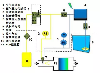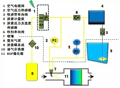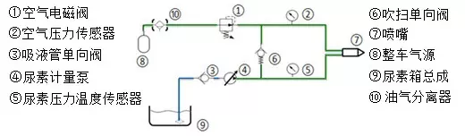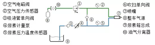电磁阀全关时:P尿素压力测量值<100mbar;P空气压力测量值<100mbar