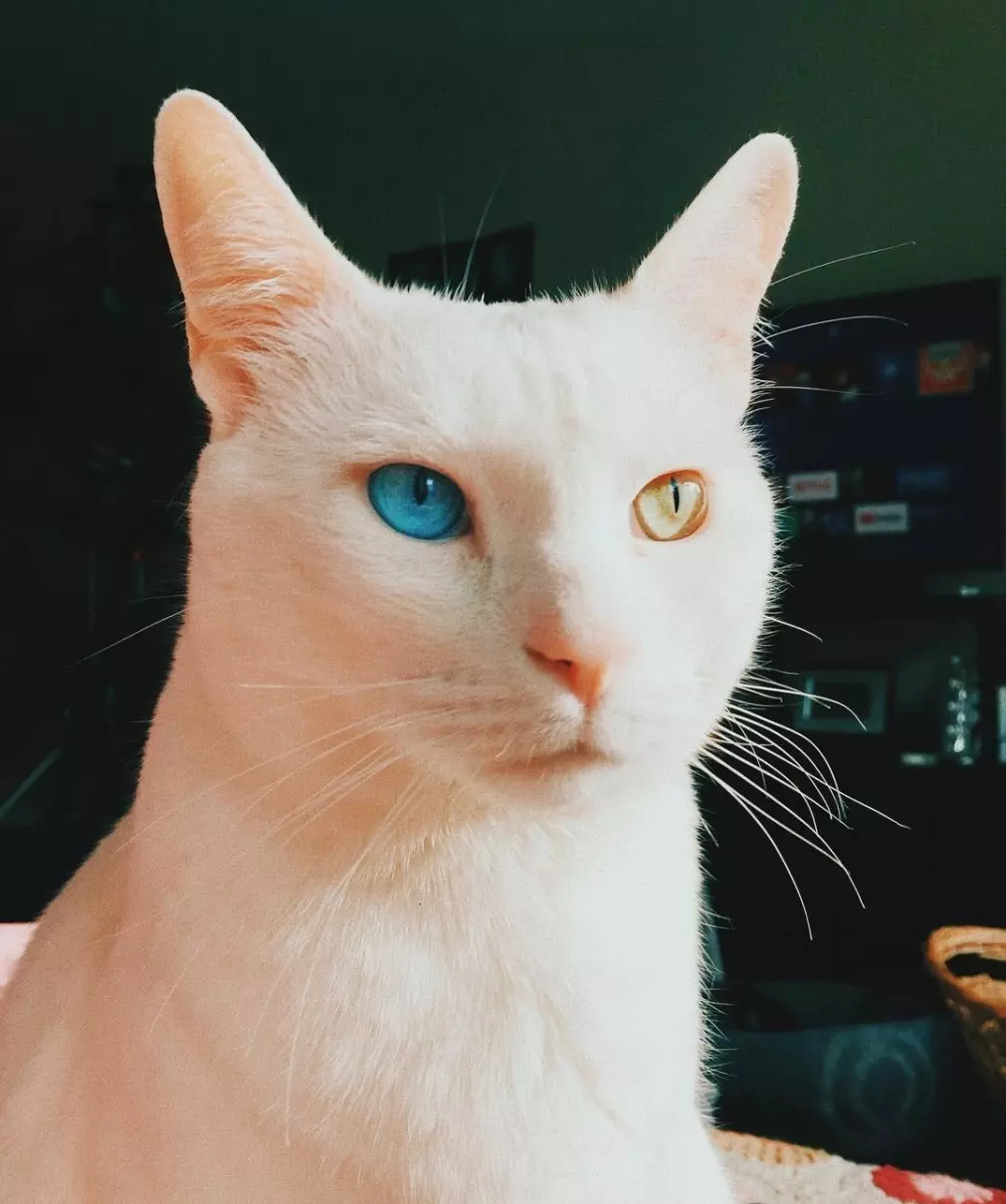 因为虹膜异色症经常出现在白猫身上,再加上纯种猫初期大都是近亲繁殖来进行定向选育的,所以那些纯白色的猫咪品种里出现异色瞳的概率就比较高了,波斯猫、土耳其安哥拉猫、德文卷毛猫、东方短毛猫等品种都有纯白色的猫,但是波斯猫在上个世纪八九十年代在中国很火,可能这就是大家觉得异色瞳白猫都是波斯猫的原因。下面这只猫咪是异色瞳的土耳其安哥拉猫,是不是很美腻?